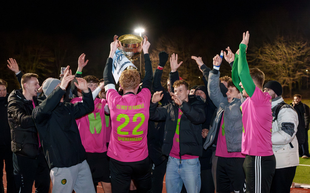 Das Spiel um Platz 3 wurde nur im Neunmeterschießen entschieden. TU Køppinnacken behielt hier mit 4:1 gegen die Kickers klar die Oberhand und sicherte sich einen Getränkegutschein von Brinkhoff´s. Im Finale ging TU Hot TU Handle genau mit dem Pausenpfiff mit 1:0 in Führung. In der weiten Halbzeit versuchte Bella viel, aber der Ball wollte nicht rein. Kurz vor Schluss fiel dann das 2:0, bei dem sich der Horizonte-Keeper auch noch verletzte und vom Platz musste. An der Stelle wünschen wir gute Besserung! Das 3:0 war dann der Schlusspunkt. TU Hot TU Handle ist die erste Mannschaft seit Dynamo Tresen 2019, die sich in einem Jahr beide Titel sichert und scheint nach dem Ausscheiden von Dynamo die Mannschaft zu sein, die man schlagen muss, um den Pokal zu holen.
