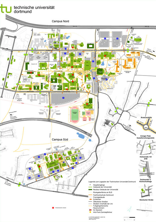 Die Einrichtungen der Technischen Universität Dortmund verteilen sich auf den größeren Campus Nord und den kleineren Campus Süd. Zudem befinden sich einige Bereiche der Hochschule im angrenzenden Technologiepark. Genauere Informationen können Sie den Lageplänen entnehmen.