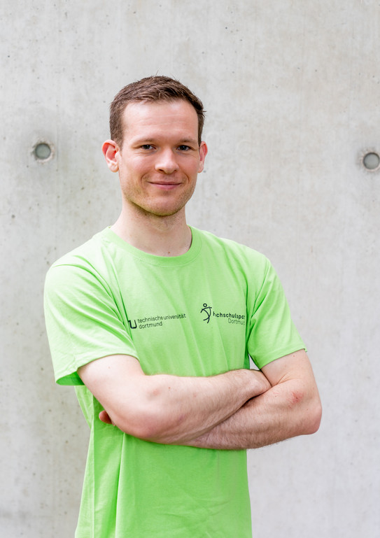 Max kümmert sich um das Sportprogramm und organisiert fleißig Großevents wie den Campuslauf oder die Fußball-Campusliga. Er organisiert auch die Presse- und Öffentlichkeitsarbeit. Er ist stellvertretender Leiter des Hochschulsports.